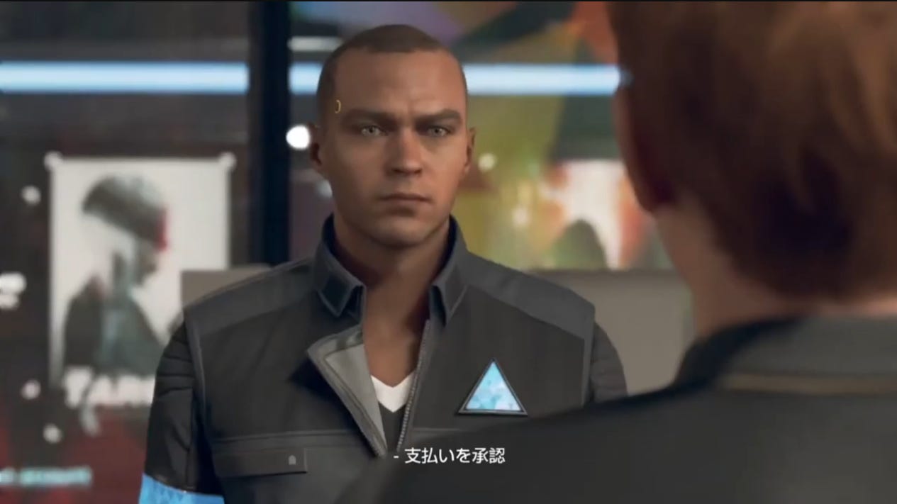 下記画像は、「Detroit: Become Human」というSFゲームで、アンドロイドのマーカスというキャラクターが、お店で決済をしているシーンです。おそらく、アンドロイドは常にネットワーク送受信可能であり、「思う」だけで支払いを実行しました。