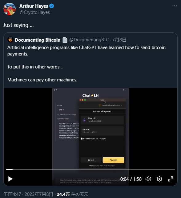 AIが提示したLNインボイスに、人間が送金する日も来る可能性があります。