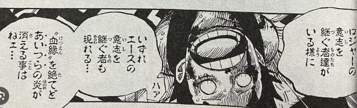 「D」は名前に含まれるので、血縁関係が重要と思われがちですが、「白ひげ」によると血縁というよりは意志を継ぐことが重要だとされています。