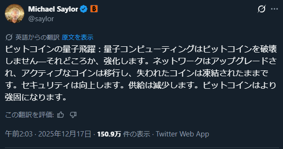 ビットコインの量子コンピューター議論は色々話題を呼びますね。その中でも「凍結」の話題が特に炎上気味だと個人的に考えています。マイケル・セイラー氏が量子耐性に対するアップデート及び、凍結について言及されていたので、僕なりの意見と考察について話します。