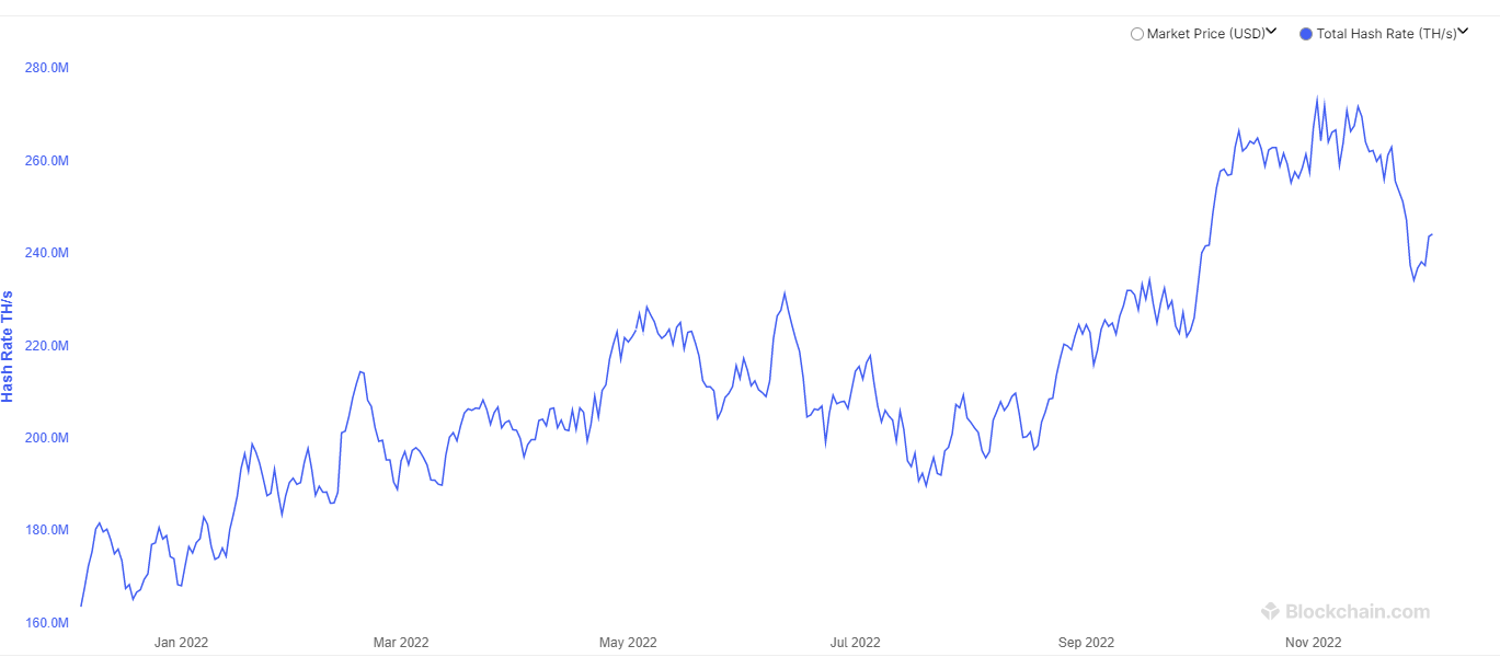 実際にハッシュレートは下落しており、一部ストップしているように見られます。