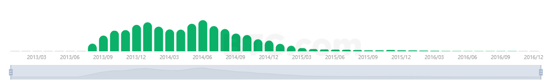 また、採掘ブロック数を見るに、2014年1月と2014年6月の2度ピークが来ています。1ブロックあたり10分、1ヵ月を30日とすると、1ヵ月のブロック総数は4,320ブロックです。2014年6月には1,874ブロック採掘していたので、1ヵ月平均で43.3%のブロックを生成していたことがわかります。高めのレートをキープしていたことが伺えます。