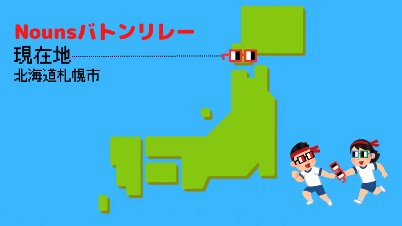 7月21日には既に北海道をスタートしたらしく、沖縄までNounsメガネのバトンが渡ります。